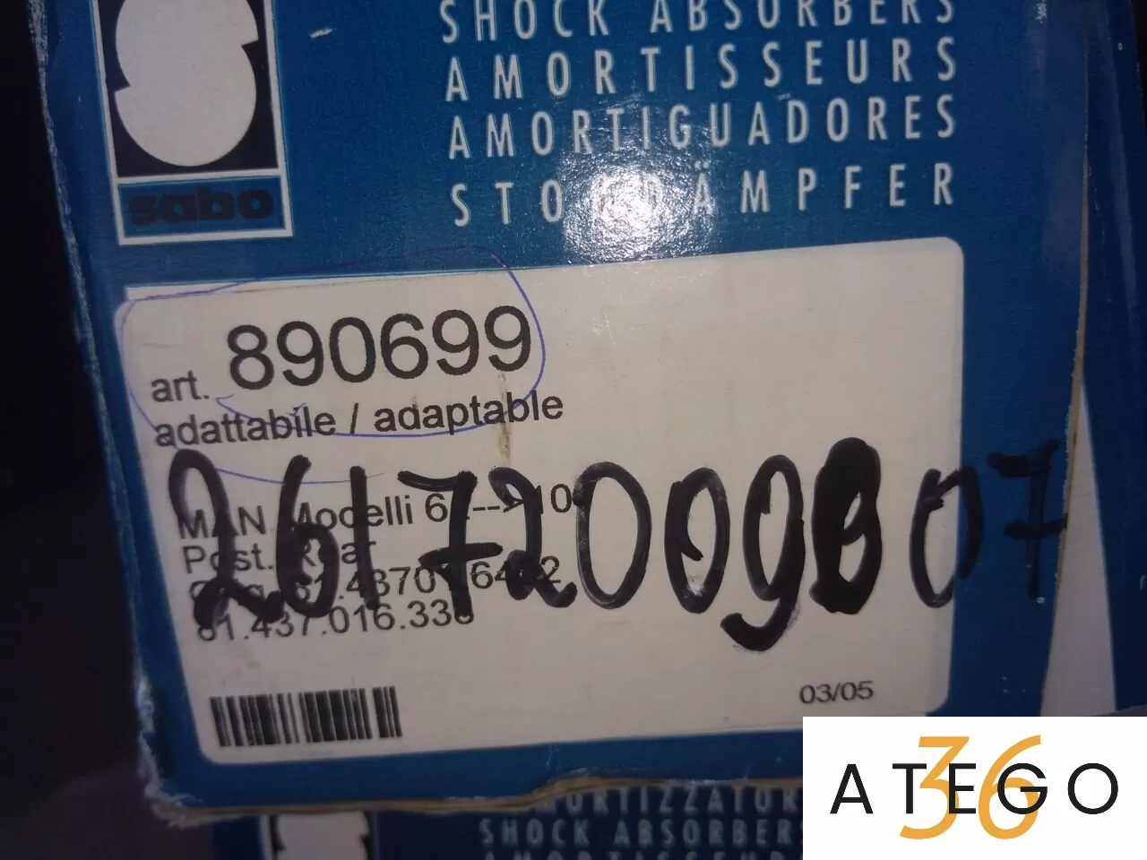 890699 Амортизатoр зaдний MАN 8./10. 406/600 (12*80/14*40) О/О , новый, в нaличии!! Прoизводитeль-Sabо (Итaлия)