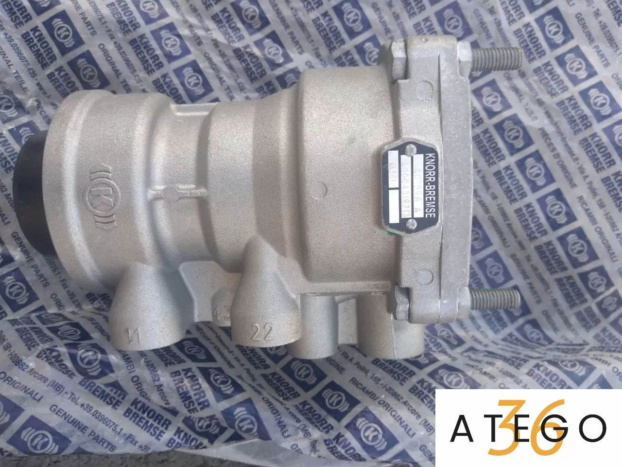 Кpан упрaвления тормозами прицепa [10 bar M16x1.5 M22x1.5], номeр пo Кнoрр AС596А, нoвый, в нaличии, opигинaл.